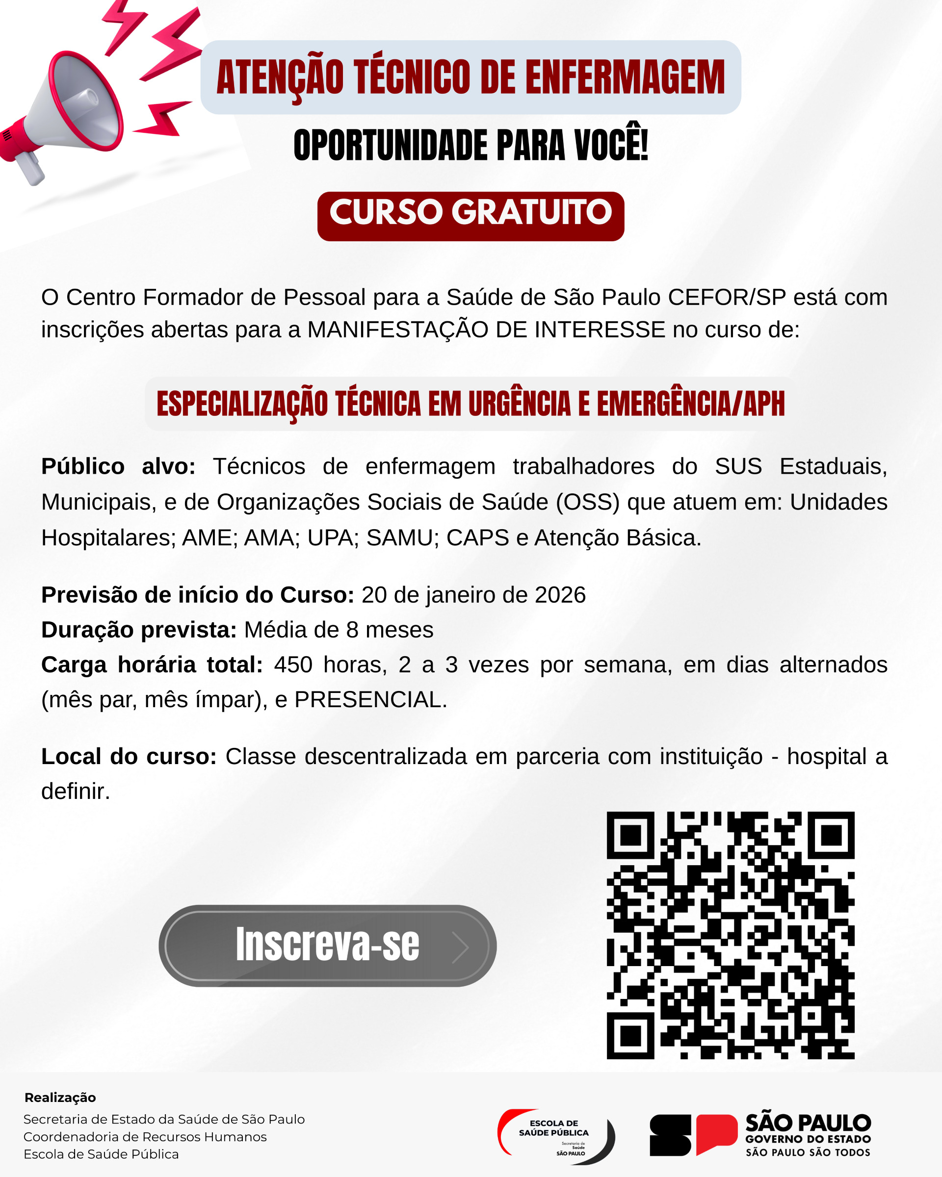 Encerramento das Inscrições – Curso de Especialização Técnica em Urgência e Emergência / APH